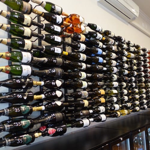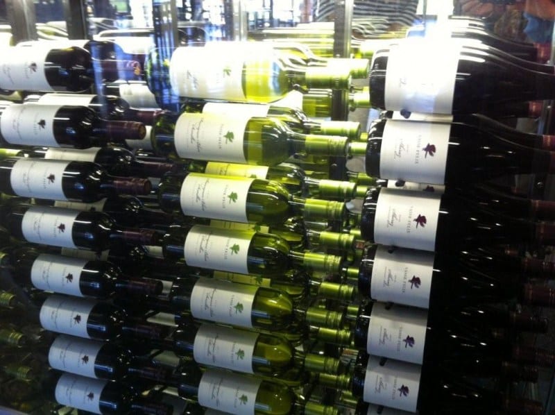 • Wine bottle labels are displayed